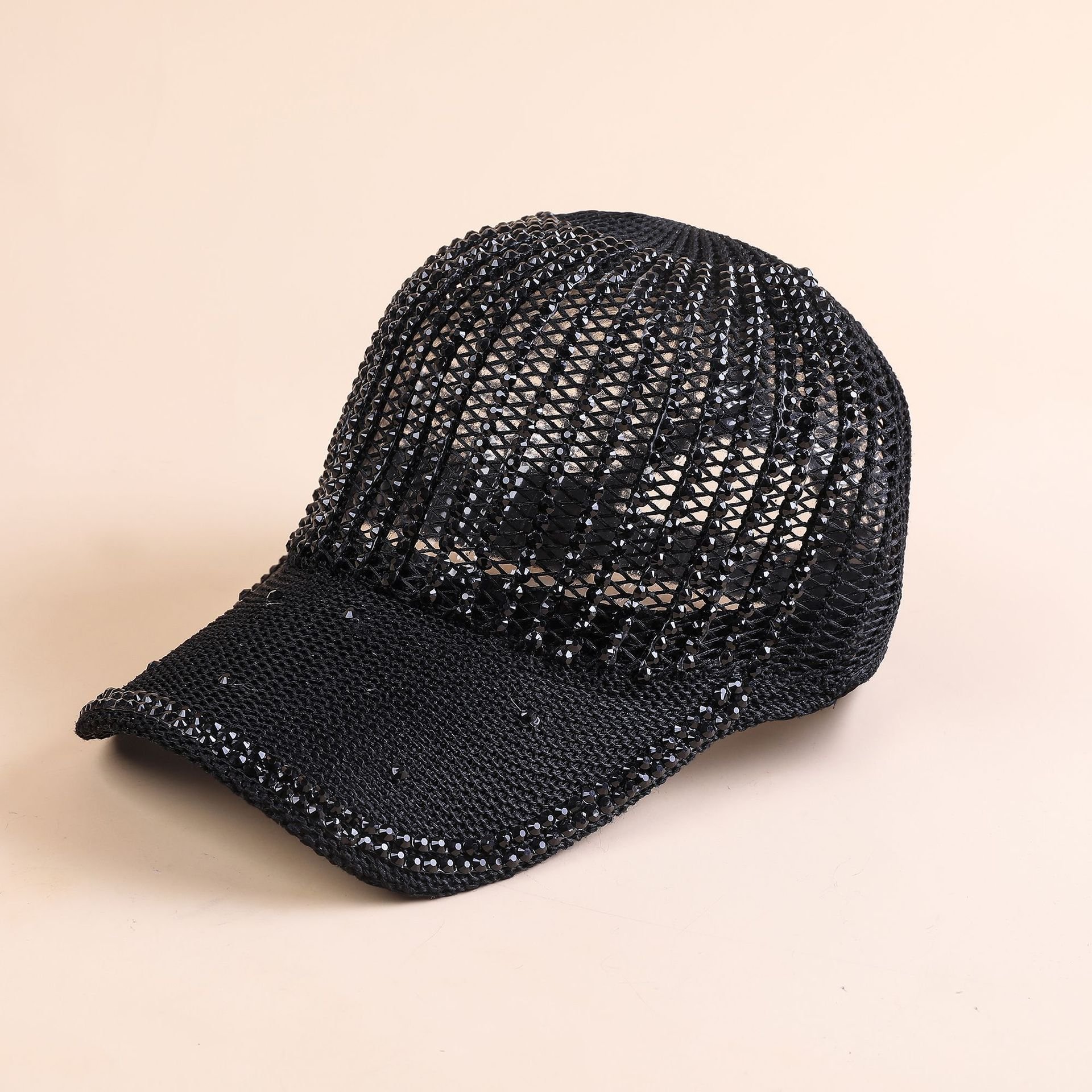 Home > Hat women's summer hand stick drill knitted hollow peaked cap Korean version of the trendy new fashion rhinestone sunshade baseball cap